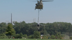 B-roll video shows Iowa National Guard Soldiers of Bravo Company, 171st Aviation Regiment transporting a U.S. Air Force A-7D Corsair II fighter jet static display of the 185th Air Refueling Wing, via airlift to Siouxland Freedom Park in South Sioux City, Nebraska, Sept. 16, 2025. The jet will remain at the park for public display.